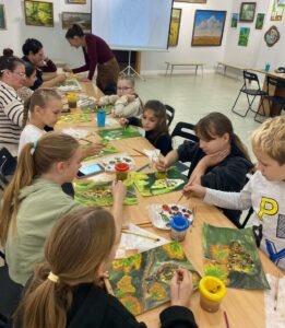 Под чутким руководством художницы Швецовой Натальи Александровны мероприятие прошло в игровой форме, с демонстрацией техники работы и поэтапным нанесением краски. Мастер раскрыла все секреты изображения рисунка.