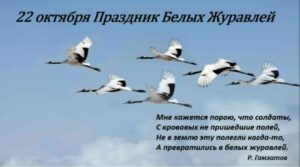 Этот день памяти связан со стихотворением Расула Гамзатова «Журавли», которое в музыкальном исполнении стало реквиемом по павшим воинам. Им же и посвящена сегодняшняя дата. Она зародилась в Дагестане, на родине поэта, а по прошествии лет получила международное значение — ЮНЕСКО включило его в свой календарь памятных событий. В этот день традиционно проводят возложения цветов к мемориалам и литературные вечера, а также запускают в небо бумажных журавликов как знак